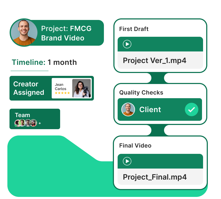 Our video process is well-structured, with defined steps, rigorous quality checks, and set turnaround times, ensuring a seamless journey from start to finish.