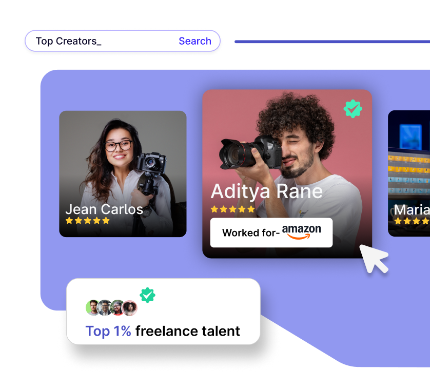 Work with creators and teams who have worked for brands like ITC, Apollo, Amazon, Kotak Bank, and more.