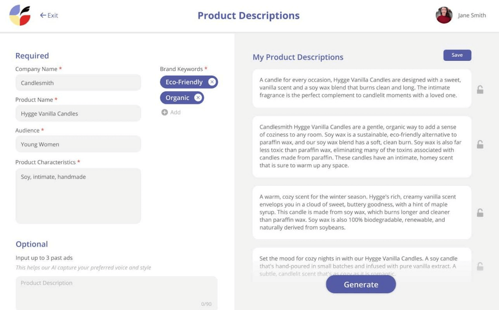 Copysmith is an AI copywriting tool designed to assist in generating marketing and advertising content. It uses machine learning algorithms to create compelling copy for various platforms, including ads, product descriptions, and social media posts. Copysmith allows you to input specific details, such as the target audience and desired tone and generates tailored content accordingly. It can significantly reduce the time and effort required to produce persuasive marketing materials. Copysmith’s AI capabilities make it an indispensable AI-based writing tool for businesses and marketers aiming to create engaging and persuasive content.