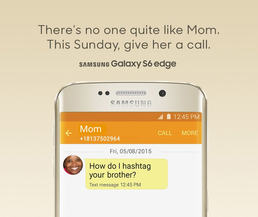 In this manner, the ad not only showed the diverse texting styles of mothers, but also promoted the then-newly launched Samsung Galaxy S6 Edge.
