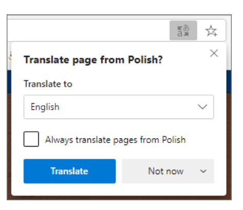 ● When you open a page in a language other than English, Microsoft Edge shows a translation prompt similar to Google Chrome.
