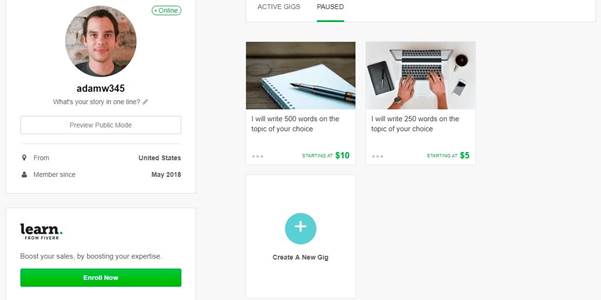 On Fiverr, freelancers are known as sellers, business owners are known as buyers, and freelance services are called gigs. Whenever a buyer books a gig, the platform automatically charges their account and puts the money on hold.
