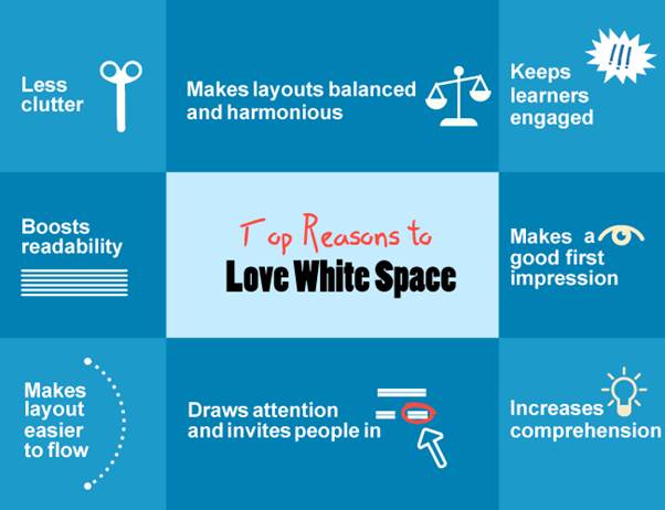 Using white space effectively helps the brain scan, evaluate, and break down the material into edible chunks.