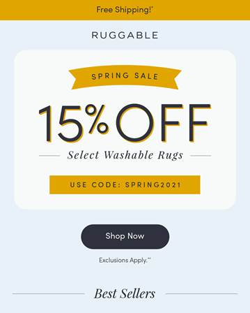 When you’re holding a sale, including precise percentages is an excellent method to attract your reader’s attention. Ruggable does precisely that: When you open the company’s spring sale email, you’re met with a large “15 percent off” sign, so there’s no mistaking what’s going on.