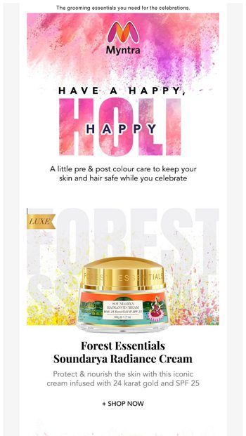 E-commerce newsletter emails can be educational as well as promotional, or both. E-commerce business email templates can also have links to their blogs, products page, and social media handles. Newsletter plays an important part in maintaining a brand’s image and relationship with customers; make sure you utilize it well. Here’s what Myntra does.