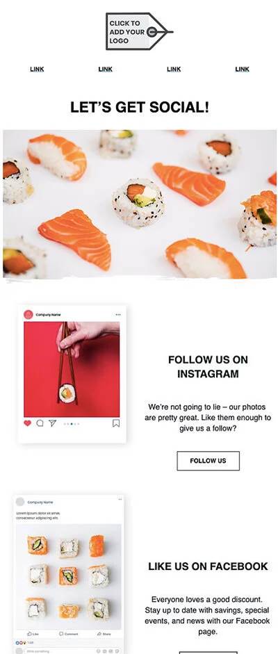 Before creating a template, decide on a single clear purpose for the email. Subscribe to your competitor’s email lists and take inspiration from their email templates. Analyze what you like or dislike as a buyer and implement that in your template design.