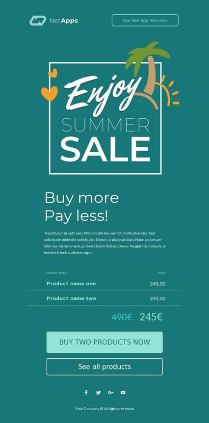 ● Templates’ colors must stand with the email content. The welcome email should be warm, and the promotional email can be bright.