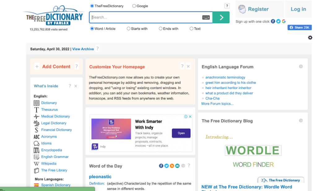 It is an all-inclusive site that serves the purpose of a dictionary, thesaurus, and an encyclopedia. It has a huge collection of medical, legal, and financial terms. You can translate into various languages like Spanish, French, Portuguese, etc. Another benefit of this tool is that it is compatible with mobile devices and is available for free.