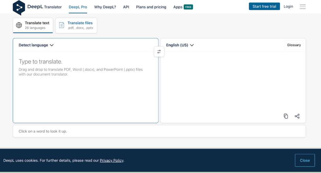 DeepL is a noteworthy language-translation tool that allows users to translate the whole document in one go. It is a free machine translation software using the latest technology to deliver flawless results.
