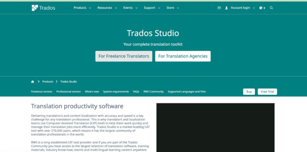 This is a phenomenal translation tool used by translators all over the world. It is a professional translators’ first choice, making their work swift and more precise. It has outstanding features such as translation memory, terminology, software localization, machine translation, etc.