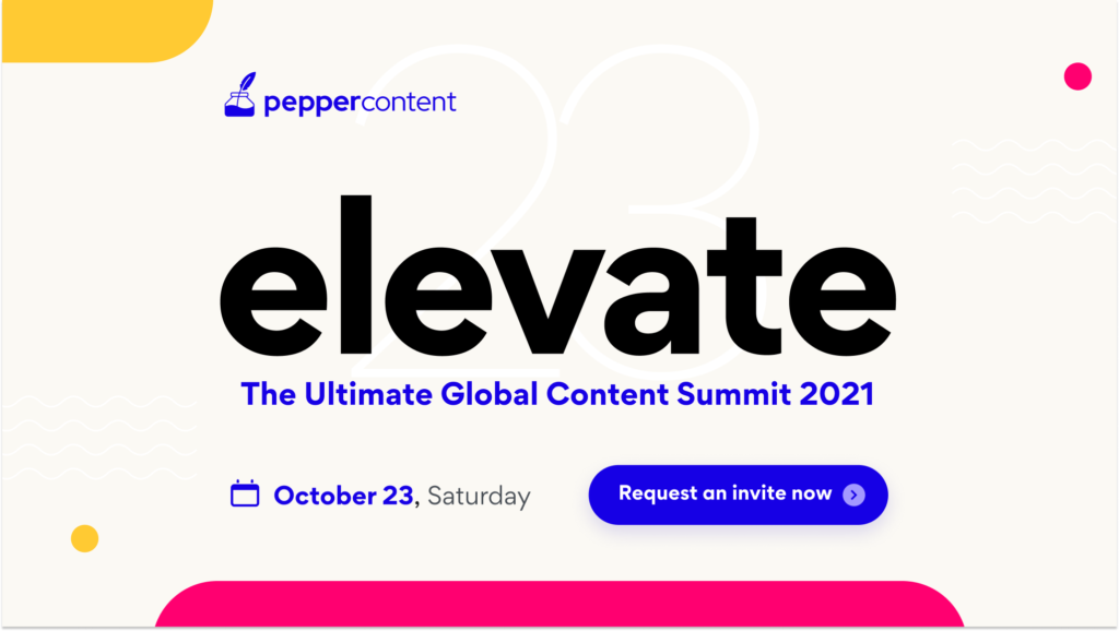 Speaking of creating a space where the community can interact, Pepper Content is proud to present Elevate, the ultimate global content summit of 2021. Elevate is a fully immersive virtual content summit bringing together the biggest names in the content marketing space from across industry and the globe.