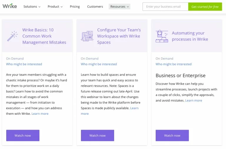 Take a look at how Wrike conducts frequent webinars to keep users updated with the changes.