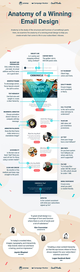 A simple mailer design with a good balance of text and visuals is often more effective than a long message with many images and links. Furthermore, according to Campaign Monitor, a clear and simple email design can keep spam filters at bay and enhance your emails’ overall deliverability.