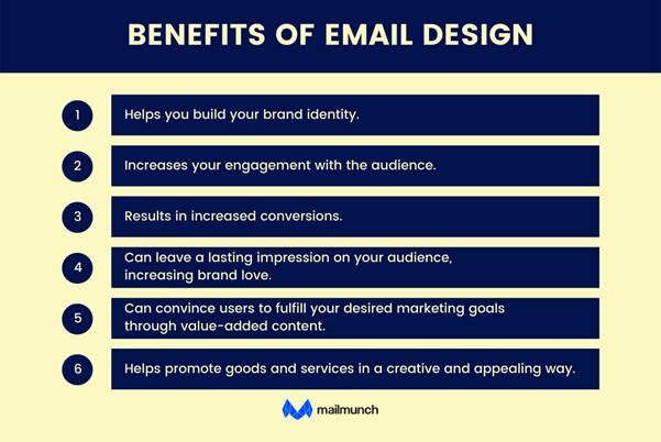 ● Simple email designs are cost-effective and reduce the required time to send emails, thus saving time.
