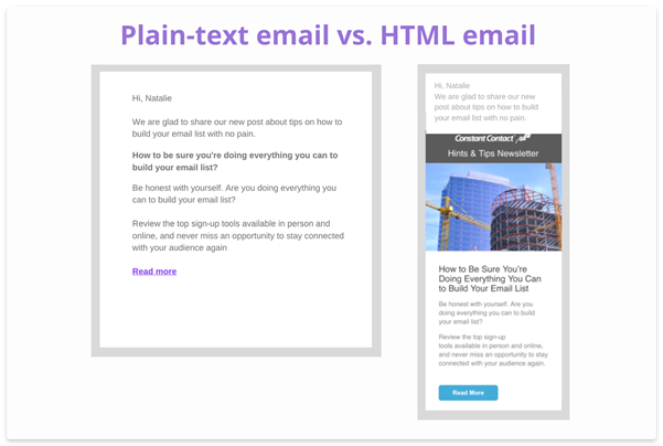 Plain text-only email designs are just that: plain and simple texts. They have a simple format and are easy to put together. They’re the email equivalent to a typewritten letter, with no pictures, fancy fonts, or hyperlinks.