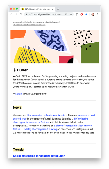 Breaking news and recent trends are also considered a good time for sharing newsletters. A recent example may include the COVID-19 outbreak. Leveraging the panic, many editorial emails have found their way to the inbox of thousands of people.