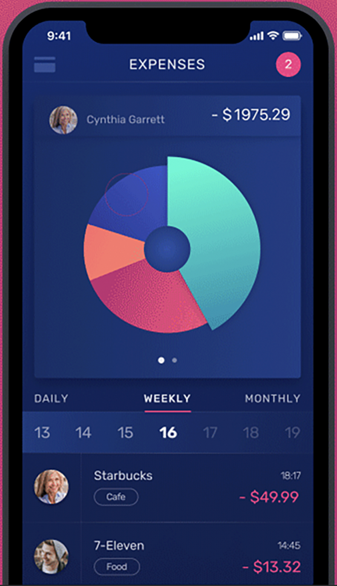 When you click on a portion of the pie, it switches into a bar graph. The bar graph has the carbon-copy colors as the pie chart. It provides information delving into each person’s expenses.