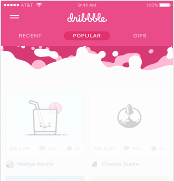Dribble is a popular creative application. It shows various creations with a liquid pull-down animation.