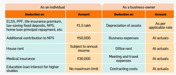 It is important to note that this is not the complete list of deductions allowed. You may be allowed other deductions depending upon the role you choose. Furthermore, you may not be eligible for all of these deductions, depending upon the nature of your work.