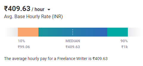Freelance writers earn between INR 99 to INR 1,000 per hour of work. This depends upon the years of experience. As the graph shows, freelancers with one year of experience usually earn INR 389 per hour, while those with 5-9 years of experience earn INR 491 per hour.