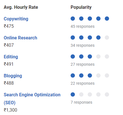 Freelancing income can also depend upon the services you provide. Given below is an exhibit that shows how your hourly income may vary depending upon the skills or services you provide.