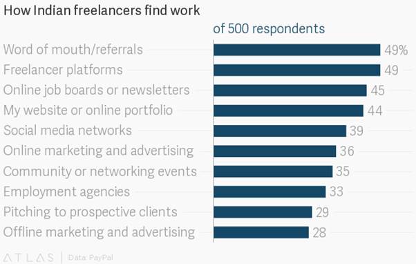 However, you can also find freelancing opportunities in India through other methods. Almost 49% of freelancers also depend on freelancing platforms and marketplaces such as Pepper Content and Freelancer and online job boards for freelancing opportunities in India.