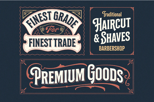 Avoid using fonts such as Century Gothic, Helvetica, or even Baskerville Old Face, however classic they may seem. Generally, stylized fonts work best. But make sure not to opt for a highly stylized one as it will make it difficult to read the brand name. It is best to mix a cursive font with cleaner retro typefaces for a complementary design choice like the ones below: