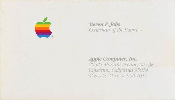 Another way to make your business card stand out is with the way it looks. The shape, color, size, and font can make it unique. These should match the brand image. For example, bright colors and loud fonts can be appropriate for an events company. Sober shades and distinguished typefaces will match a business consultancy. You can seek help from a professional design service to get the most effective outcomes. Steve Jobs’ business card was simple and elegant, with a lot of white space and the Apple logo to provide a pop of color.