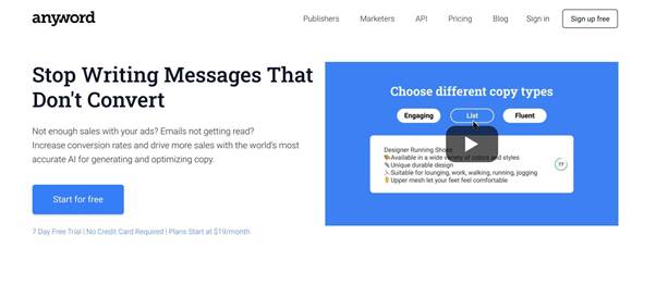 Anyword is a program that can help you do many things, from writing social media posts to creating ads. The AI content generator behind it can create different types of content for all of your needs.