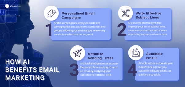 Email marketing initiatives benefit from artificial intelligence in two ways: