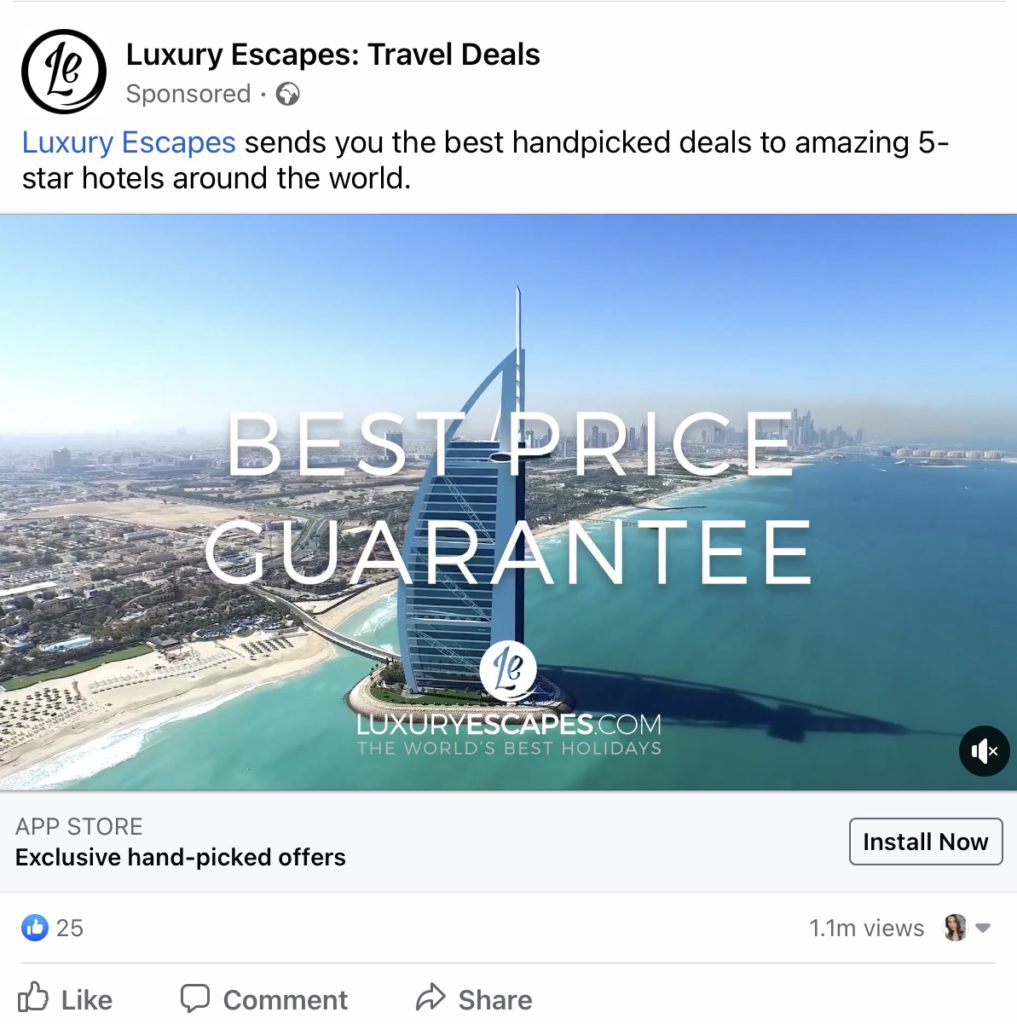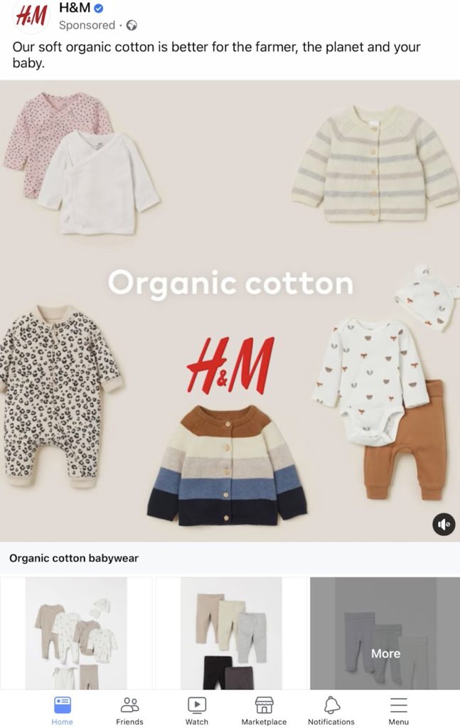 This ad format is an advanced version of carousel ads, only offered for mobile devices. They are more customizable and full-screen compared to the carousel ad format. Collection ads are perfect for large eCommerce stores to showcase their collection to customers to purchase a product or service. Customers can also shop without ever leaving Facebook, making the mobile shopping experience easy.