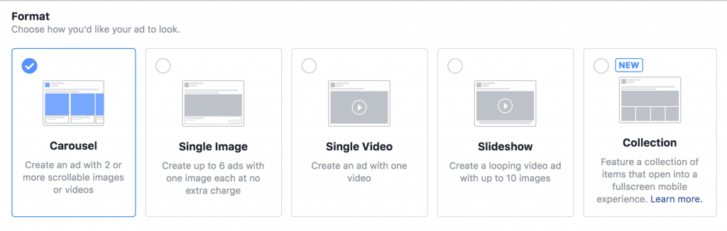 As discussed earlier, choose the correct Facebook ad format based on your goals. If you’re trying to increase website traffic, for example, consider what ad format would help you achieve this the best.
