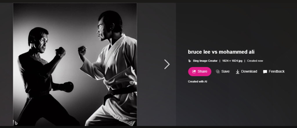 Generated by Bing Image Creator (Bruce Lee vs Mohammed Ali)