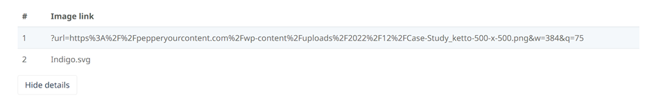 - Once the analysis is done, you’ll get a detailed overview of the images and their alt text: