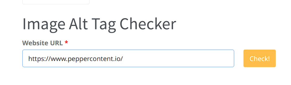 - Visit the following link – https://www.seoptimer.com/alt-tag-checker. The website interface looks like this: