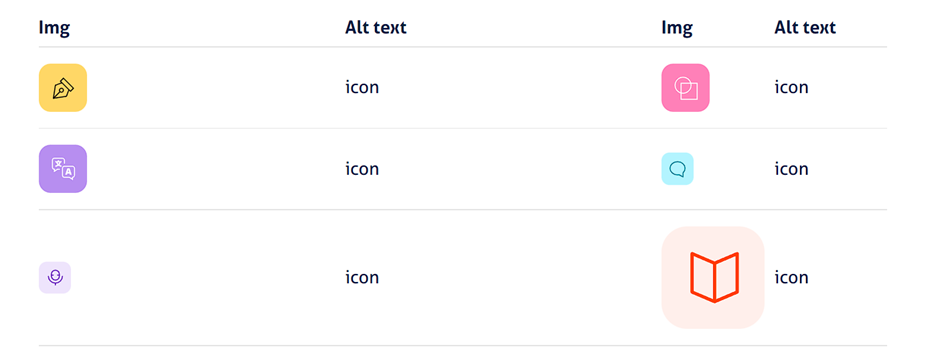 - Alt attributes should not contain keywords that are not relevant to the image.