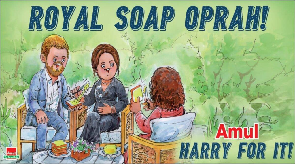 Prince Harry and Megan Markle’s interview with Oprah Winfrey was one of the most talked-about topics last year. Amul took a dig at the entire fiasco with a humorous ad. It showed all three in an interview with butter toast in their hand. The tagline ‘Royal soap Oprah’ accurately described the drama that went down.