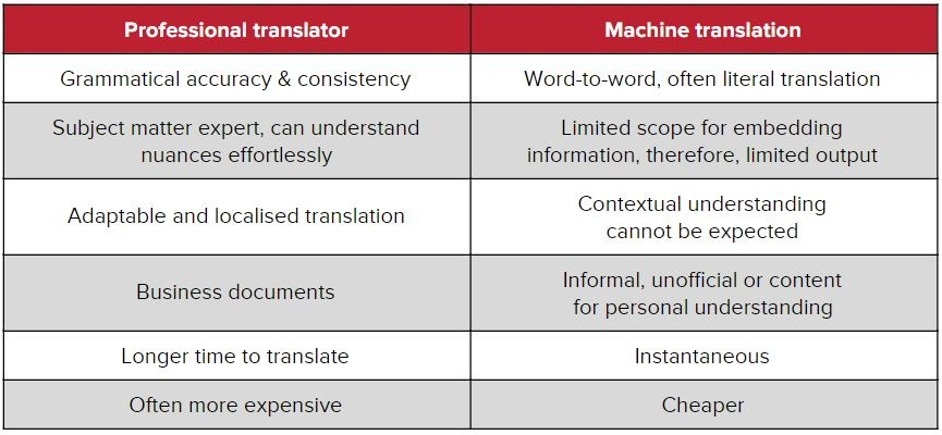 Now, let’s take a closer look at the differences between machine translation and professional human translation.