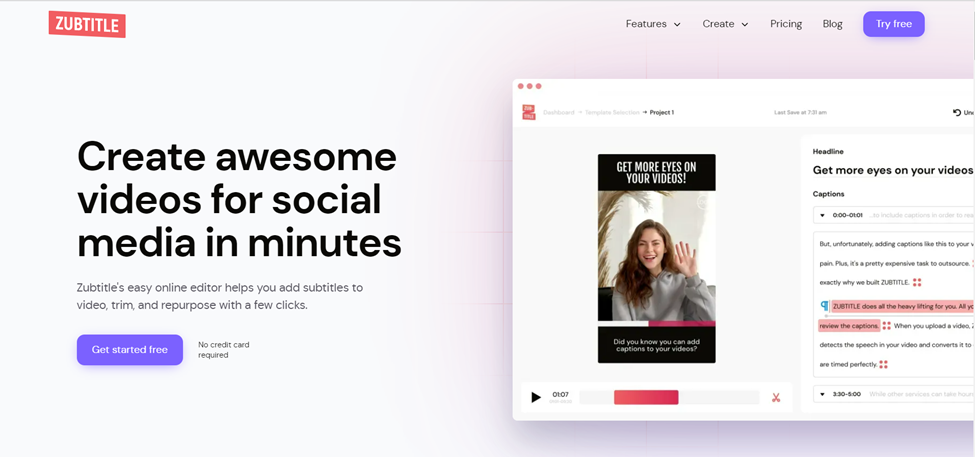 Zubtitle is more than just an auto-subtitle generating software. It has features that allow you to burn your captions directly in different video sizes and even download the transcribed files in .TXT and .SRT formats.