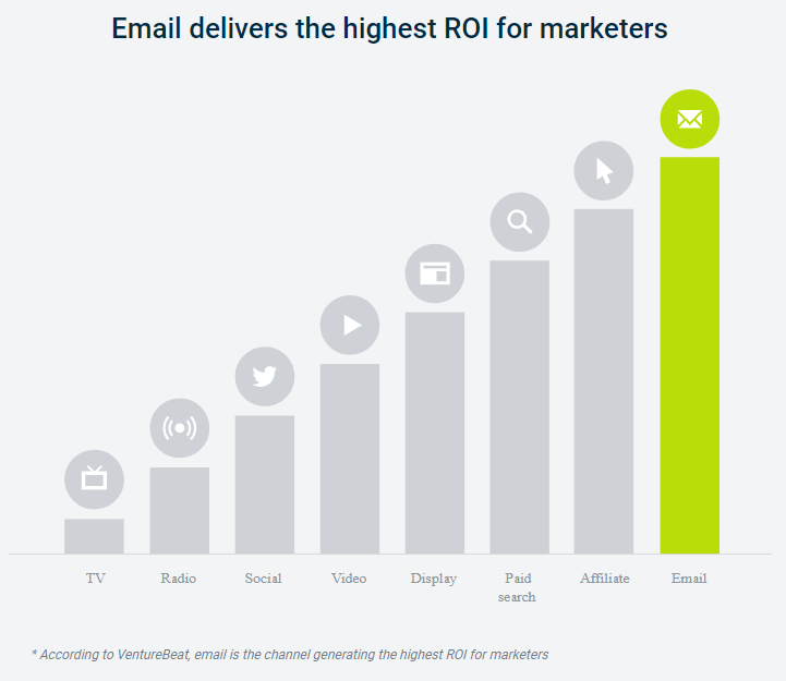 The return on investment in email marketing is the highest compared to any other marketing channels (Facebook, Instagram, display advertising, and more).