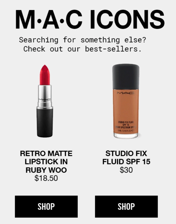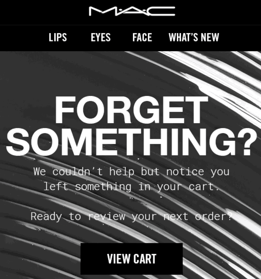 MAC Cosmetics addresses a few reasons why customers abandon their shopping carts in the email, starting with the most common: forgetting to check out.
