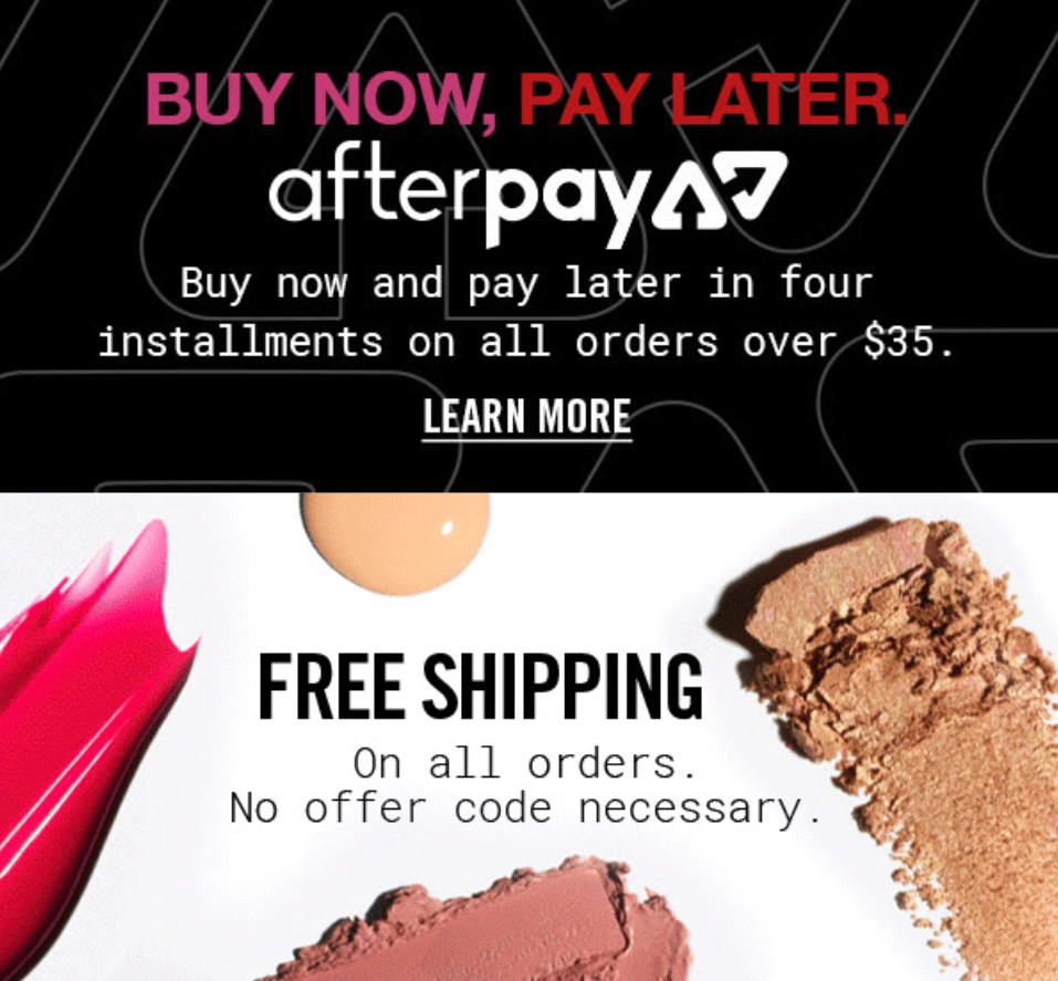 Finally, in the email’s footer, the brand informs you about its free shipping and buy now, pay later options, removing any remaining barriers to your purchase.