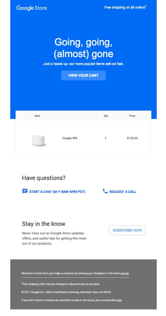 Yes, Google, too, uses abandoned cart emails. Any remarketing email’s bread and butter is its copy. While it’s easy to get carried away when crafting a clever message, you must make sure that your content correctly addresses the following points: