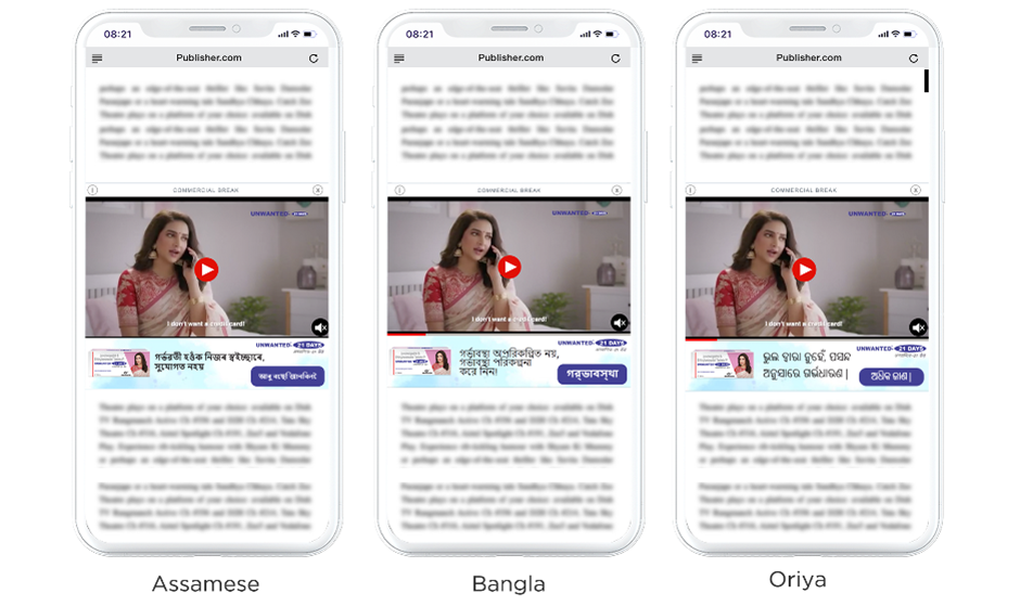 The video ad showcased information about the Unwanted 21 Days tablet. Underneath the video, a banner presented the copy ‘Pregnancy by choice, not chance!’ and a call to action ‘Know More’ that led users to the product’s landing page for more details.