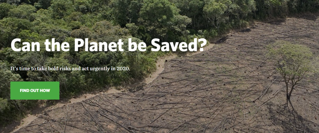 Inquiring whether the planet can be saved is a strong move. And beneath that, The Nature Conservancy utilizes two power words—“bold” and “urgently”—to propose that the planet can, without a doubt, be saved. It leaves the viewer contemplating whether they can contribute.