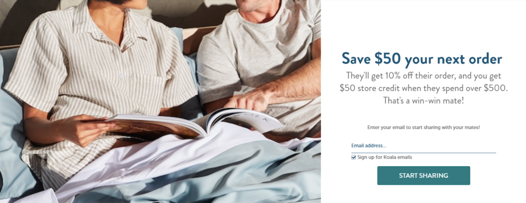 Rather than directly requesting their customers to refer the brand to their friends, Koala prods the users to promote the brand by offering a host of advantages in return. This call-to-action example works especially well in referral marketing campaigns. Through this CTA example, they tell customers how they’ll benefit from using the product as well as promoting it to friends in a subtle and smart way.