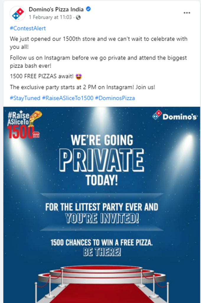 Contests are a sure-shot way to win people’s hearts and captivate even those casual scrollers. These can be run any time of the year. You can create a simple image or video-based post for contests, or use Facebook Contests App to do the job in a highly effective manner.