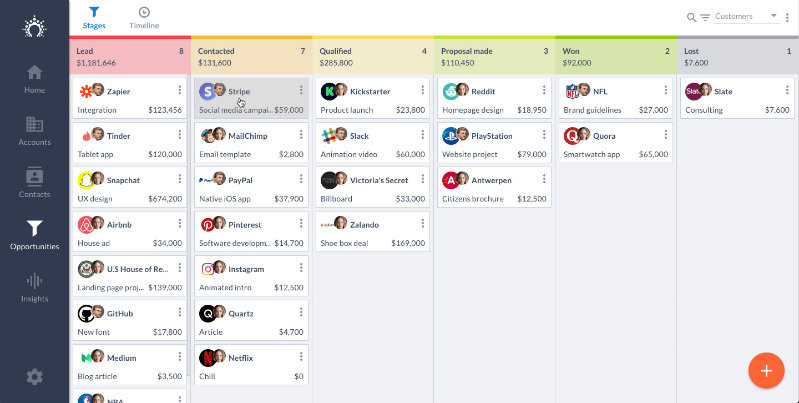 Insightly dates back to 2009 when it was started in San Francisco. It is one of the most reputable and best free CRM tools that automate several processes and infuses technology into media, consulting, advertising, non-profit, and manufacturing industries.