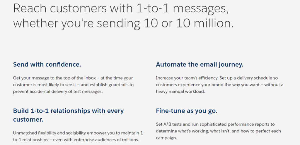 Salesforce is more famous for its CRM, but did you know it offers a cracking email marketing automation solution as well? With an unbeatable data analytics platform, Salesforce allows you to engage with your customers 1:1, fetching you sure wins.
