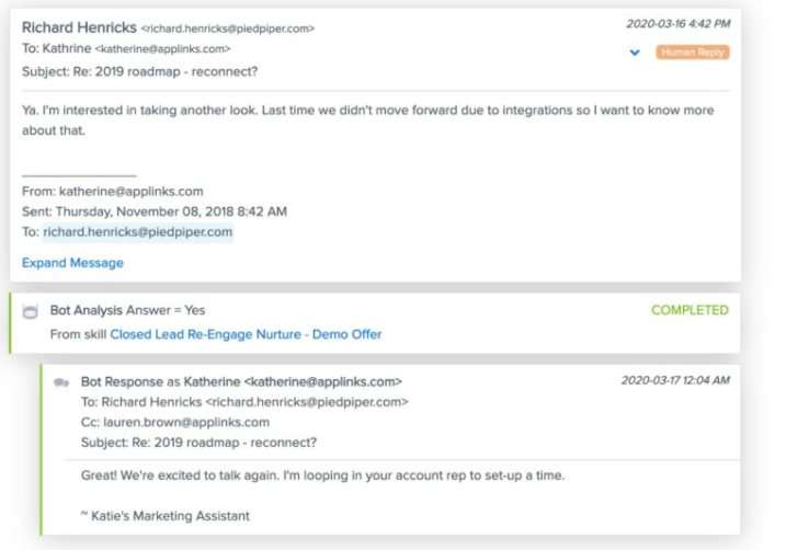 We all know Drift as the conversational chatbot, but did you know it also provides an email marketing solution? Drift uses AI-powered email bots to automatically respond to replies and suggest the next best steps.